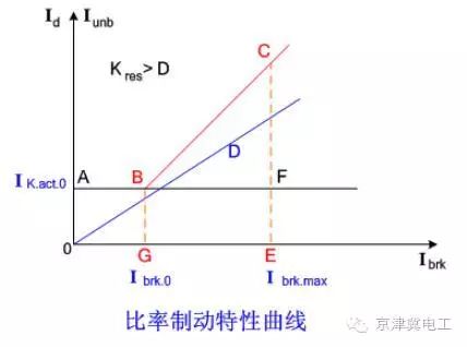 即比率制动特性的折线BC过坐标原点,在任何制动电流下有相同的制动系数。